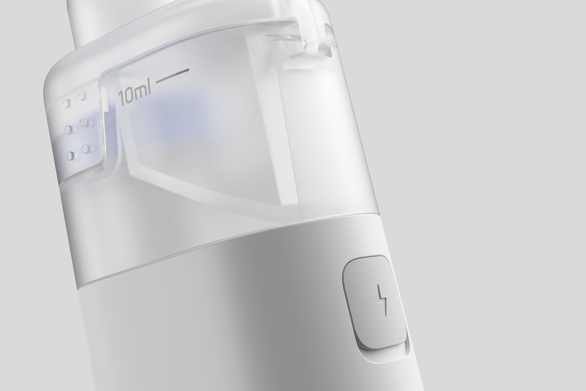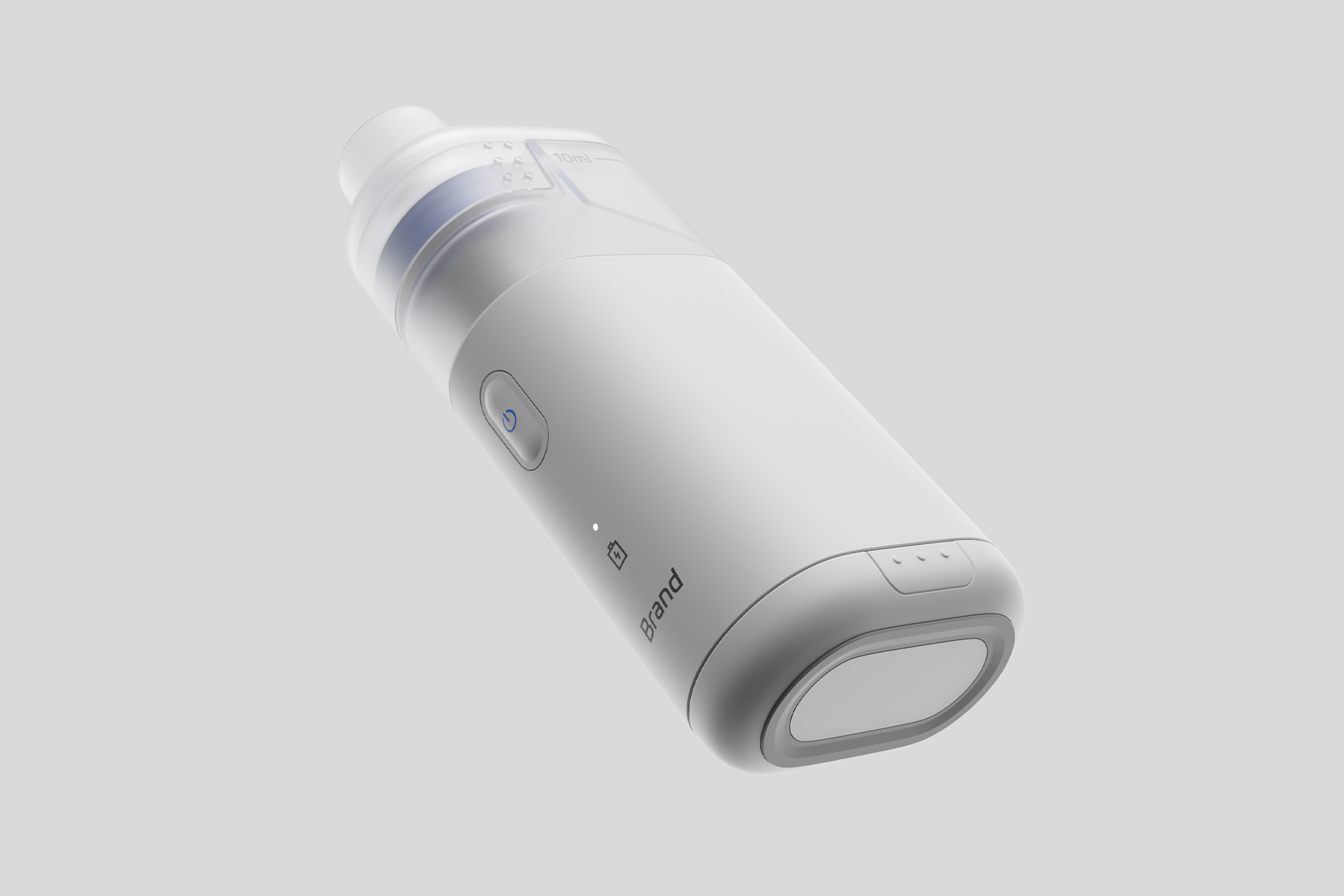 This replaceable-cartridge nebulizer creates industrial aesthetics with both visual and tactile excellence through its seamless, edgeless integrated cylindrical body, which ensures a stable and comfortable grip while completely eliminating the bulky feel of traditional devices. Its transparent 10ml medicine cup features a snap-on quick-release design connecting to the main unit, allowing one-hand, one-press operation for cartridge replacement and cleaning. Paired with the minimalist interaction of a single backlit power key and hidden status indicators on the side of the body, it enables zero-learning-curve operation for both the elderly and children. In terms of materials, the medicine cup is made of food-grade high-transparency PC material resistant to high-temperature boiling sterilization with clear and visible volume markings, while the body is crafted from skin-friendly matte ABS+PC composite material treated with anti-fingerprint technology for a warm, long-lasting clean touch. The sealing component is made of medical-grade liquid silicone, achieving both strong leak-proof performance and low-noise operation. It is available in two low-saturation color options: Pure White and Light Mist Gray, which are minimalist and versatile, seamlessly integrating into home and on-the-go scenarios. For user experience, the pre-filled cartridge design eliminates the hassle of liquid preparation and measurement, and micron-level nebulization technology delivers fine 3-5μm mist deep into the respiratory tract. The optimized air path structure keeps operating noise below 35dB, and combined with a large-capacity long-lasting battery and lightweight body, it enables efficient, quiet, and convenient respiratory care across home, travel, office, and other scenarios.