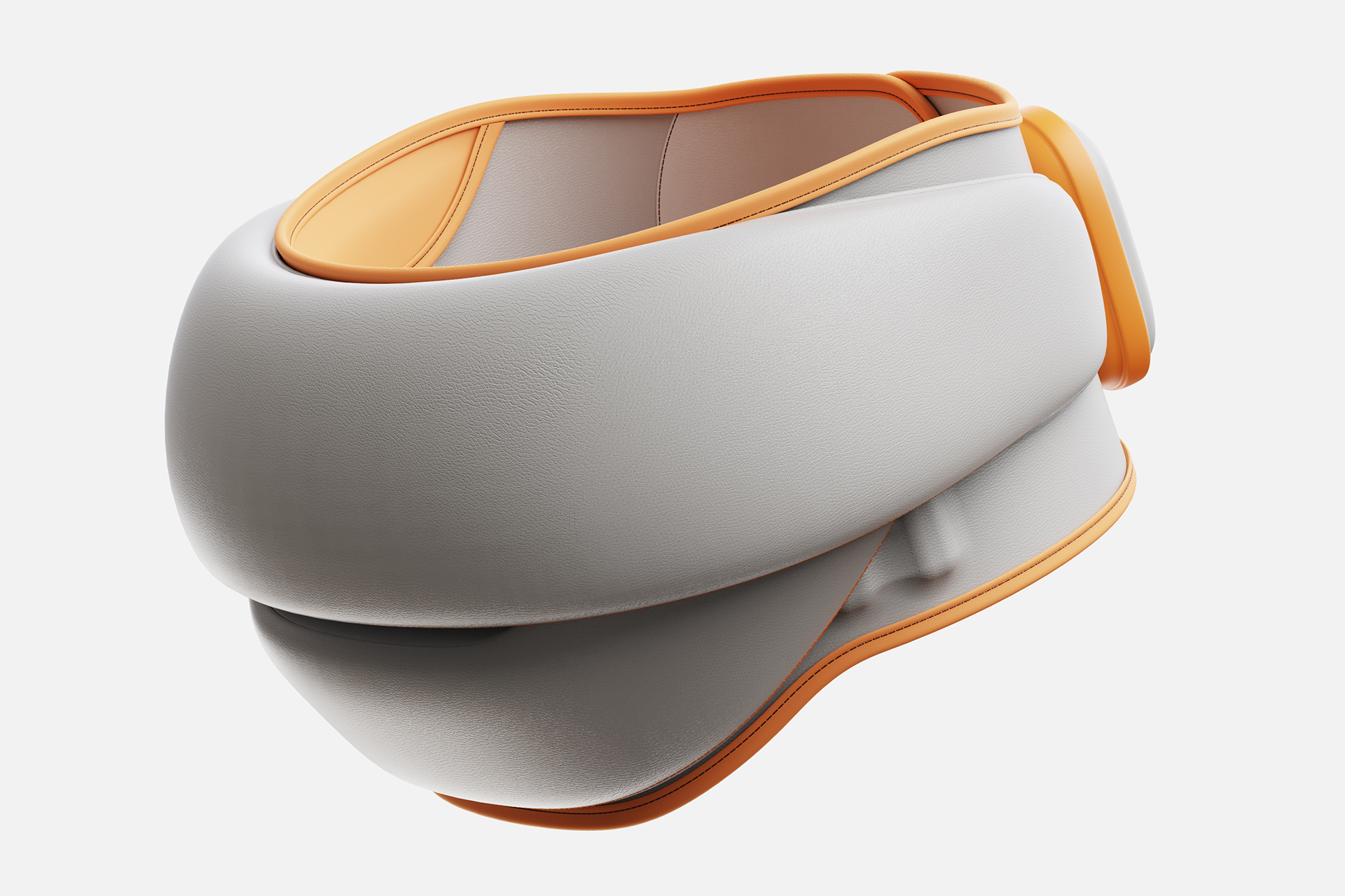 This lumbar brace redefines waist support design with an ergonomic curved wrap-around structure, featuring a shape that fits the physiological curve of the waist paired with bilateral segmented support pads, which stably supports the lumbar spine, disperses body pressure, and eliminates the tight and restrictive feel of traditional waist braces. The segmented design of the front vertical striped press-type support module and the side Velcro adjustment area not only strengthens the core support of the waist but also makes the operation more targeted. Complemented by smooth, rounded edges and contrasting color stitching, it balances the reliability of professional waist support with a fresh and modern visual aesthetic, remaining lightweight and fitting snugly without bulk when worn. In terms of materials, the outer layer is made of skin-friendly matte PU leather, which is delicate to the touch, wear-resistant, and treated with precise contrasting color edge stitching to resist wrinkling and cracking over prolonged use. The inner layer consists of breathable, skin-friendly knitted fabric paired with high-elastic cushions to enhance ventilation and cushioning, preventing sweat buildup during extended wear. The support components are made of high-elastic memory alloy strips, which are tough and adapt to waist movements, ensuring strong support without hindering daily activities such as walking and sitting for long periods. The color scheme features light mist gray as the main tone, paired with warm orange contrasting stitching and local decorative blocks, creating a fresh and lively look that suits both office and home daily scenarios and can also be integrated into casual outfits as a vibrant accessory. For user experience, the Velcro closure design allows for quick adjustment of tightness, enabling one-handed wearing that is easy for both the elderly and children to operate. The core support module provides stable lumbar support while incorporating hot compress and vibration massage functions, effectively relieving waist fatigue and muscle stiffness in sedentary people or patients with lumbar disc herniation. Its lightweight, rollable design makes it portable for travel and office use, and the wipeable PU outer layer simplifies cleaning and maintenance, extending the product's service life.