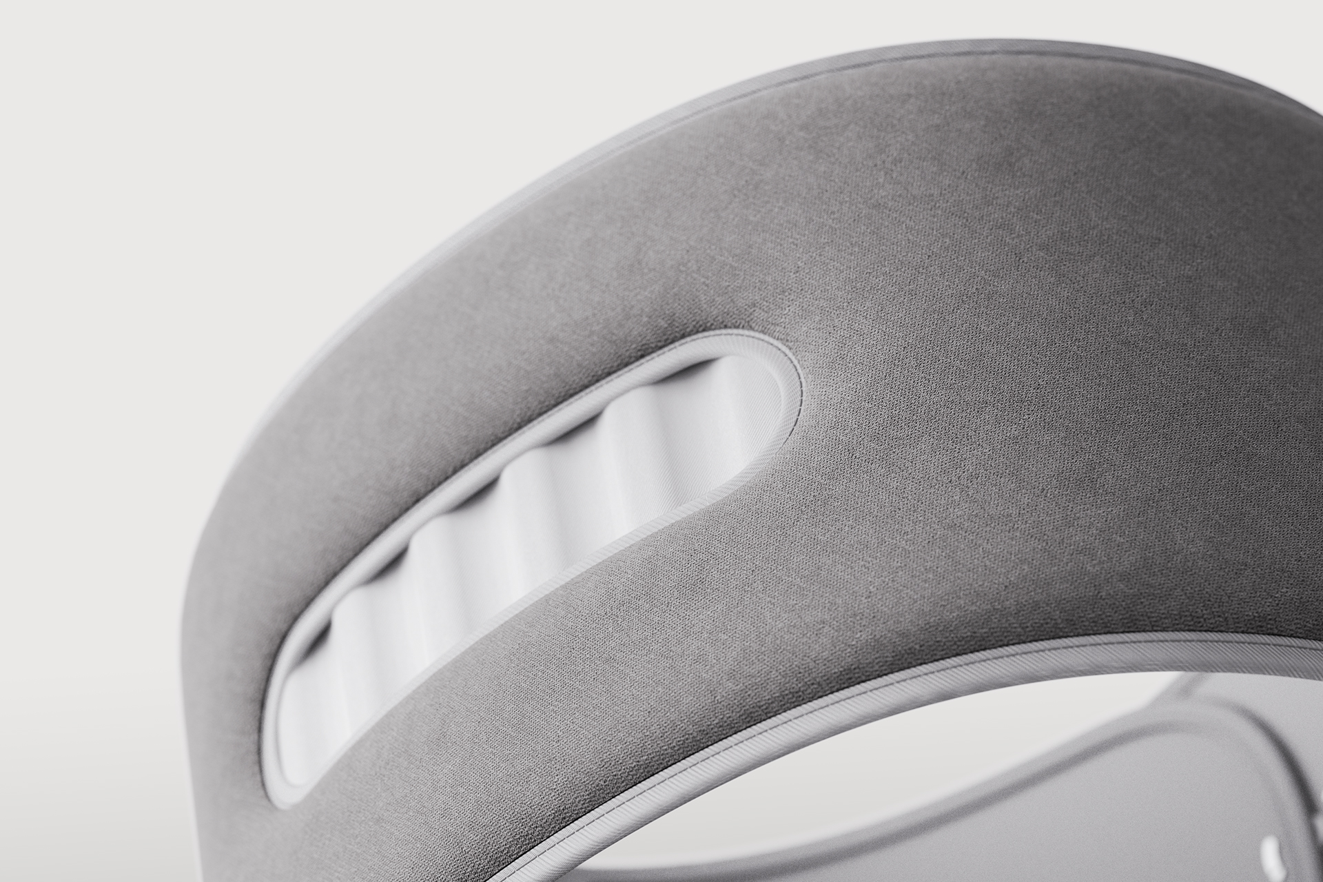 The color scheme centers on misty light gray, with tonal gradients and metallic accents on the control module, creating a restrained, minimalist look that seamlessly integrates into office and home settings without being obtrusive.