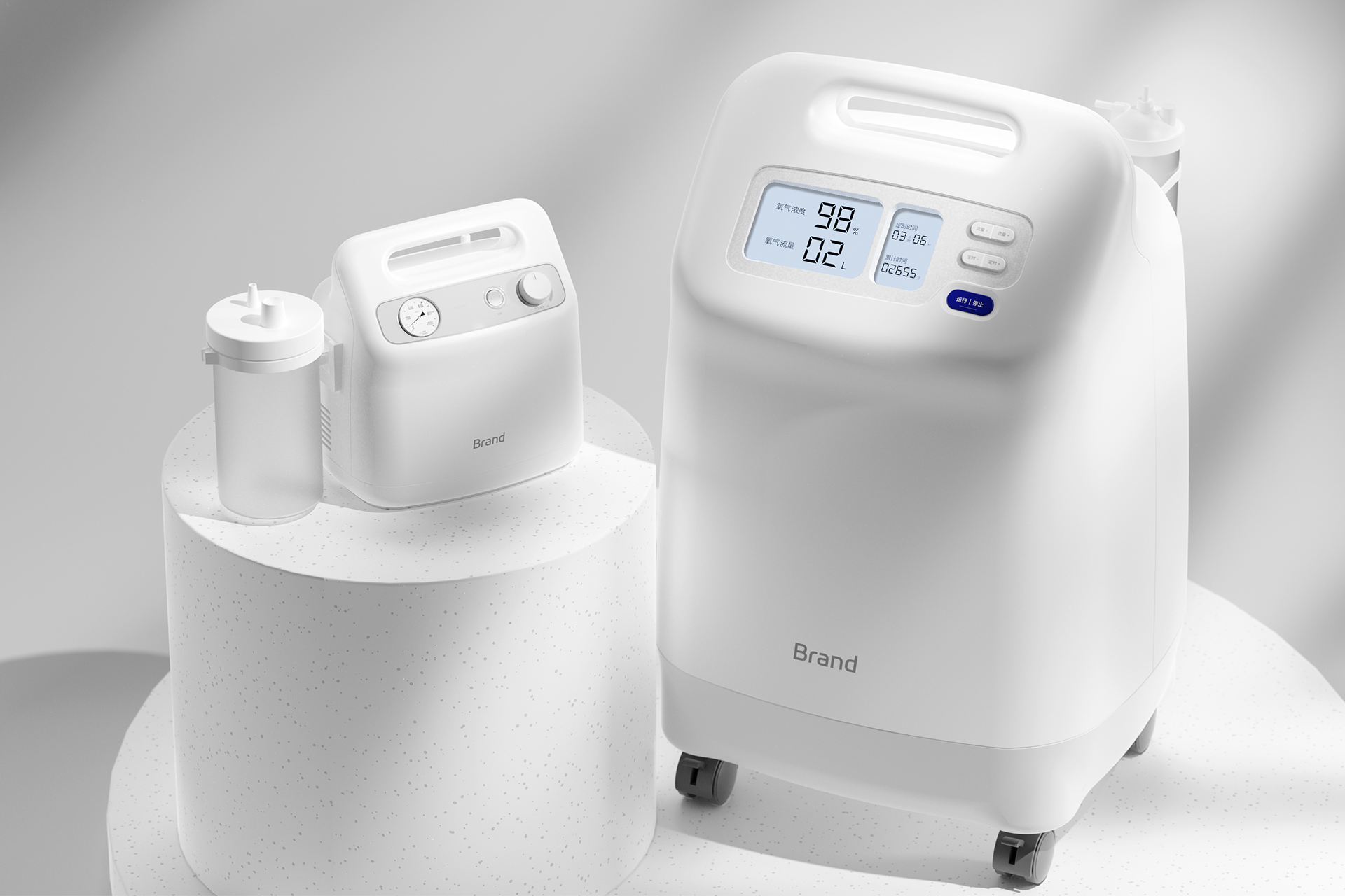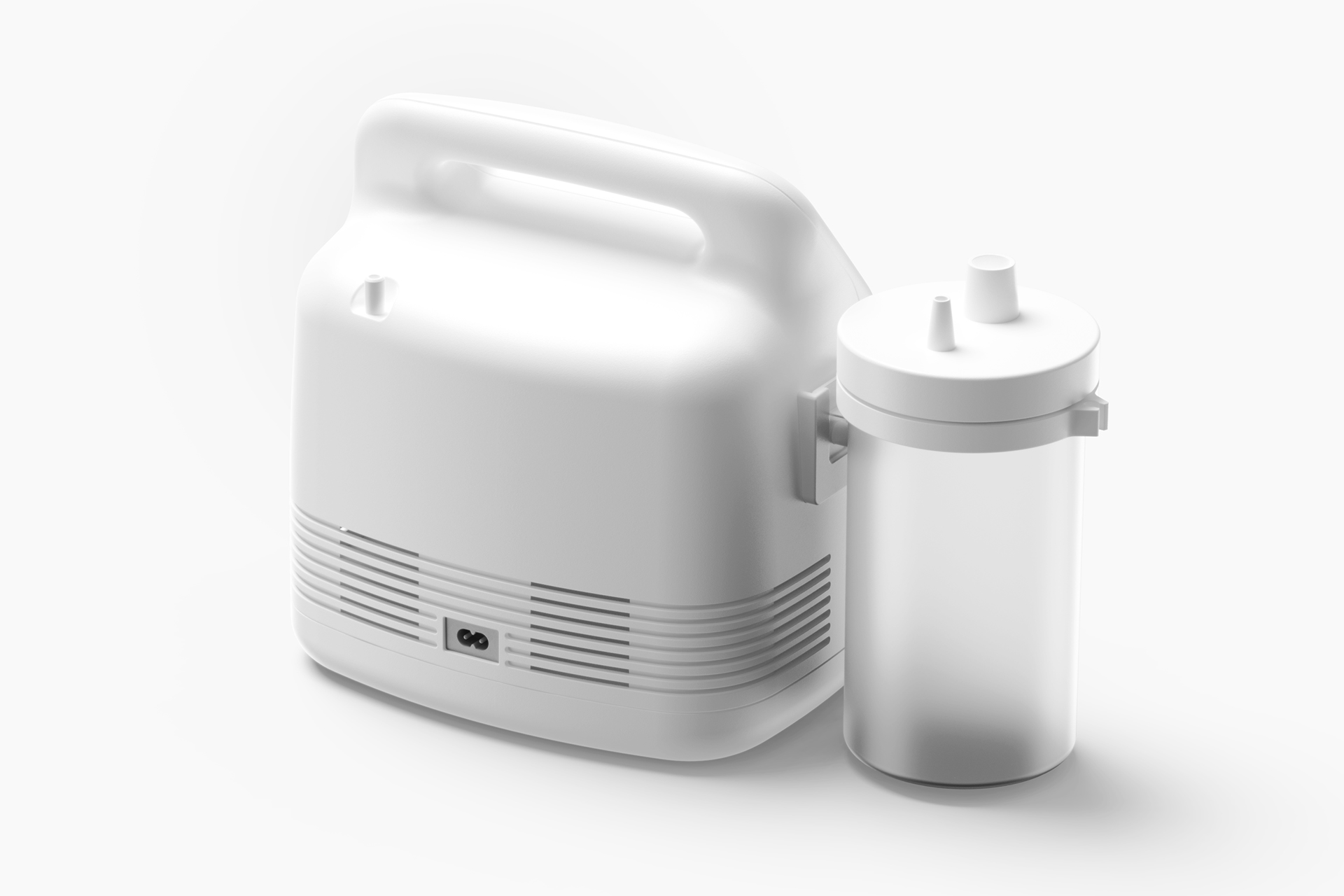 This hospital-grade suction unit redefines clinical suction design with a professional medical-grade portable and integrated structure. The integrated top handle and rounded, edgeless body form an ergonomic shape tailored to the handling habits of medical staff, ensuring easy mobility between wards while avoiding collision risks. The front dial-type pressure display, knob adjustment assembly, and minimalist button layout allow medical personnel to intuitively monitor pressure status and precisely adjust suction intensity. Supported by side pipeline storage buckles and bottom non-slip feet, it balances professional medical practicality and modern minimalist aesthetics, remaining stable and immovable when placed on a nursing station or cart. In terms of materials, the main body adopts high-strength medical-grade ABS engineering plastic, which is sturdy, shatter-resistant and compliant with medical disinfection standards, allowing wiping with alcohol and other common disinfectants; the surface features a matte anti-fingerprint treatment that resists smudges and yellowing after long-term use. The fluid collection bottle is made of highly transparent and corrosion-resistant PC material for clear liquid level visibility and easy disassembly and cleaning, while knobs and buttons use skin-friendly silicone for a comfortable, non-slip touch that improves operational stability. The color scheme is dominated by pure white, matched with tonal matte texture and light gray functional markings, presenting a clean and restrained visual effect that conforms to the visual standards of hospital clean environments and softens the cold impression of medical equipment. For user experience, the one-button start-stop and knob pressure regulation design enables quick operation by medical staff; the large-capacity fluid collection bottle and easy disassembly structure reduce replacement frequency, and the side pipeline storage design keeps tubes tidy. Meanwhile, the medically certified stable negative pressure output and anti-backflow design ensure safe and efficient performance in clinical emergency and nursing scenarios. The overall lightweight design with a portable handle facilitates rapid transfer by medical staff to the required wards.