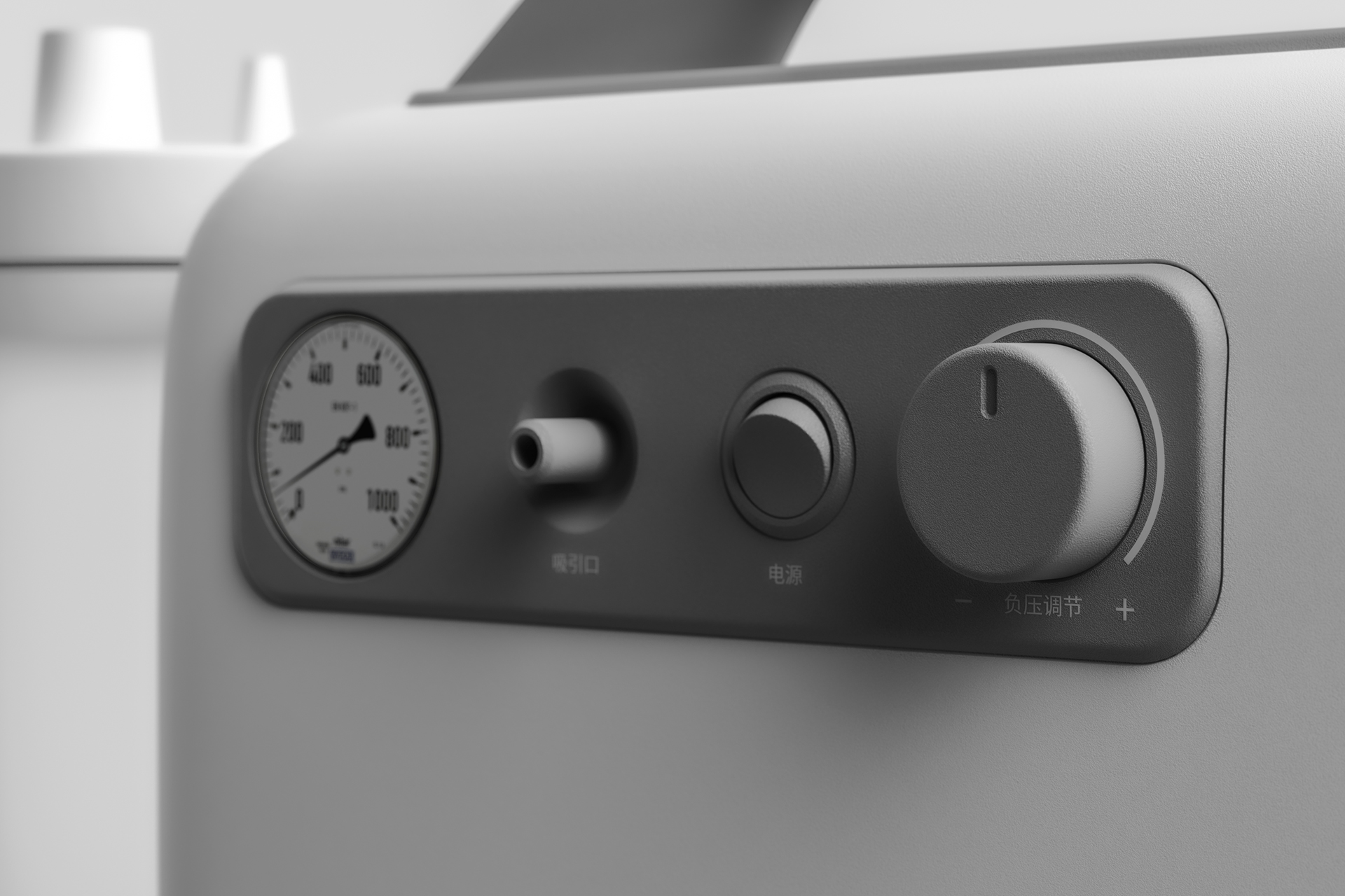 This hospital-grade suction device redefines clinical suction design with a professional medical-grade portable and integrated structure. The integrated two-color top handle and rounded, edgeless rectangular body form an ergonomic shape tailored to the handling habits of medical staff, ensuring quick mobility between wards while minimizing collision risks. The front dial-type pressure display, paired with a knob adjustment module and a minimalist button layout, allows medical personnel to intuitively monitor negative pressure status and precisely adjust suction intensity. Complemented by side pipeline storage buckles and non-slip bottom feet, it balances professional medical practicality with modern minimalist aesthetics, remaining stable and non-slip when placed on a nursing station or trolley. In terms of materials, the main body is made of high-strength medical-grade ABS engineering plastic, which is sturdy, shatter-resistant, and compliant with medical disinfection standards, allowing wiping with common disinfectants like alcohol; its surface is treated with a matte anti-fingerprint finish to resist smudges and yellowing over long-term use. The fluid collection bottle is crafted from highly transparent, corrosion-resistant PC material for clear liquid level visibility and easy disassembly and cleaning, while the handle and adjustment knobs use skin-friendly silicone for a comfortable, non-slip grip that enhances operational stability. The color scheme features pure mist white as the primary tone, accented by dark gray functional modules and tonal matte textures, creating a clean and restrained visual appeal that aligns with the hygienic visual standards of hospital environments while softening the cold impression of medical equipment. For user experience, the one-button start/stop and knob pressure regulation design enables quick mastery by medical staff; the large-capacity fluid collection bottle and easy disassembly structure reduce replacement frequency, and the side pipeline storage design keeps tubing organized. Additionally, medically certified stable negative pressure output and anti-backflow design ensure safe and efficient performance in clinical emergency and nursing scenarios. The overall lightweight design, combined with the portable handle, allows medical staff to quickly transfer the device to the required ward, providing timely airway care support to patients.