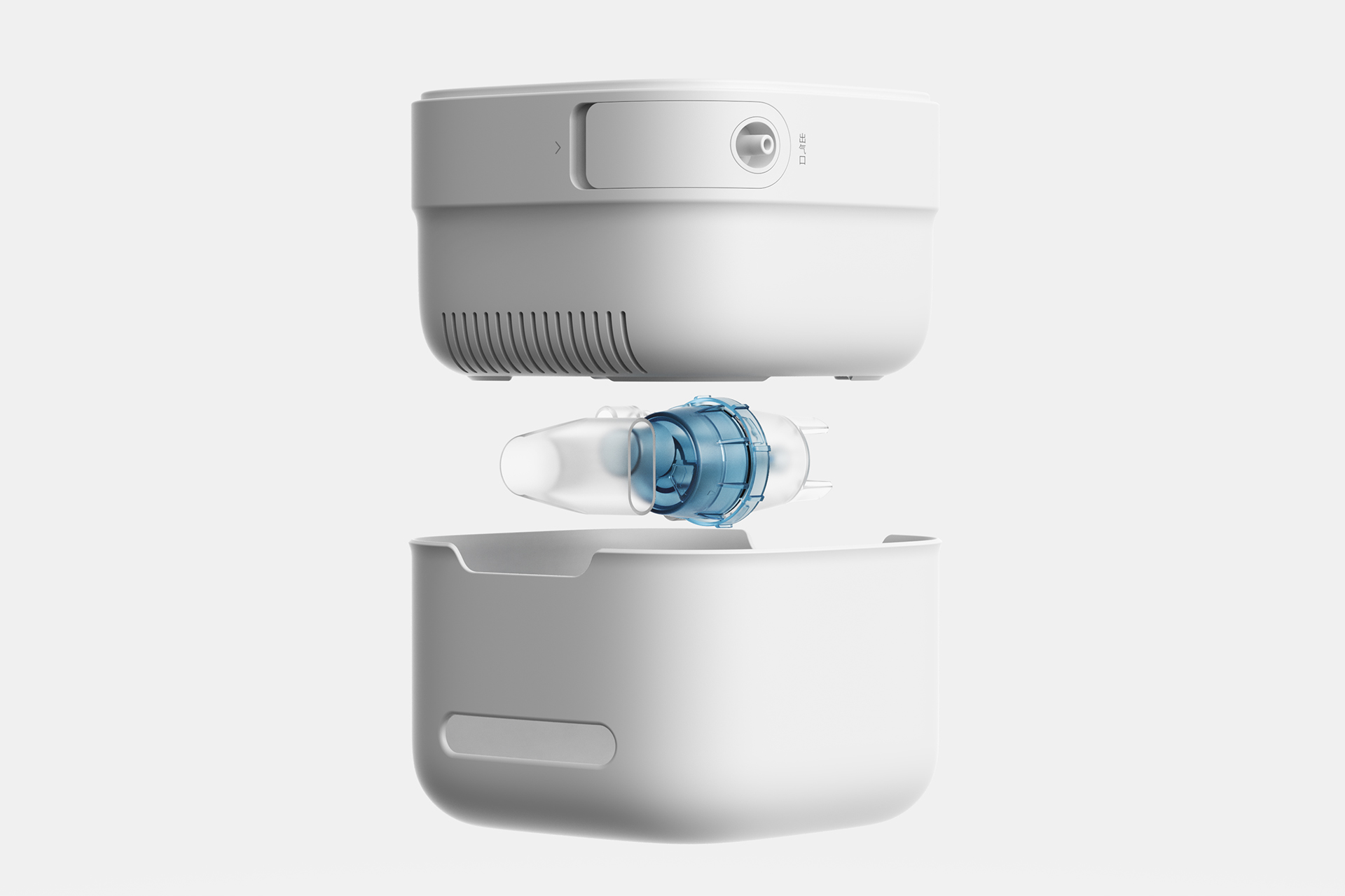 这款带一体化收纳功能的压缩雾化器,以家用医用双适配的极简模块化结构重构雾化护理设计,独创机身与收纳仓合一的一体式造型,搭配圆润无棱角的全包覆流线机身,彻底告别传统雾化器配件零散、收纳杂乱的痛点,侧边隐藏式配件收纳槽与卡扣固定设计,可将雾化面罩、连接管、药液杯全数规整收纳,闭合后形成紧凑方正的整体形态,兼顾便携性与整洁度,同时贴合手持习惯的弧形握边与防误触按键布局,兼顾医用级操作精准度与现代家居审美,放置于桌面、床头柜或随身收纳包内都简约不突兀;材质上,机身主体选用高强度环保ABS工程塑料,坚固抗摔无异味,符合医用接触类材质安全标准,表面哑光磨砂抗指纹,久用不易刮花发黄,药液杯采用高透食品级PC材质,耐温耐腐蚀,清晰可视药液余量且易拆洗,接触面部的面罩边缘甄选亲肤软硅胶,柔软贴合不压脸,长时间雾化也无不适感;配色以纯净奶白为主色调,搭配浅灰功能按键与淡蓝收纳槽点缀,色调柔和干净,弱化医疗设备的冰冷感,完美适配居家、办公、外出差旅多场景;用户体验层面,一键启停操作极简,老人小孩均可独立上手,低噪压缩机芯运行安静不扰人,出雾细腻均匀易吸收,收纳仓一体化设计无需额外收纳袋,随取随用防配件丢失,整体轻量化小巧机身,便携易携带,全方位满足家庭日常护理、儿童老人雾化、外出应急使用等全场景需求。