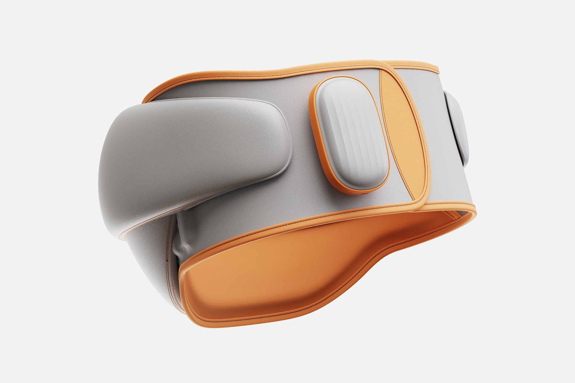 这款腰部固定器以人体工学弧形包裹结构重构护腰设计,贴合腰部生理曲线的形态搭配双侧分区支撑垫,在稳定承托腰椎、分散身体压力的同时消解了传统护腰的紧绷束缚感,正面竖纹按压式支撑模块与侧边魔术贴调节区的分区设计,既强化了腰部核心支撑力又让操作更具针对性,辅以圆润无棱角的流畅线条与撞色明线包边工艺,兼顾专业护腰的可靠感与清新现代的视觉审美,佩戴时轻薄服帖不臃肿;材质上,外层采用亲肤哑光 PU 皮,触感细腻耐磨且边缘经精密撞色包边处理久用不起皱开裂,内层为透气亲肤针织面料搭配高弹缓冲垫,提升透气性与缓冲性,长时间佩戴不易闷汗,支撑组件则选用高弹记忆合金支撑条,韧性强且可随腰部活动自适应调整,既保证支撑力又不影响日常行走、久坐等行动;配色以浅雾灰为主色调,搭配暖橙撞色明线与局部装饰块,清新明快,既适配办公、居家等日常场景,也能作为活力配饰融入休闲穿搭;用户体验层面,魔术贴搭扣设计可快速调节松紧,单手即可完成穿戴,老人与孩童都能轻松操作,核心支撑模块可提供稳定腰椎支撑,同时兼顾热敷与震动按摩功能,有效缓解久坐人群或腰突患者的腰部疲劳与肌肉僵硬,整体轻量化设计可卷曲收纳,方便差旅、办公随时使用,同时 PU 外层可擦拭清洁的结构也让产品易清洁维护,延长使用寿命。